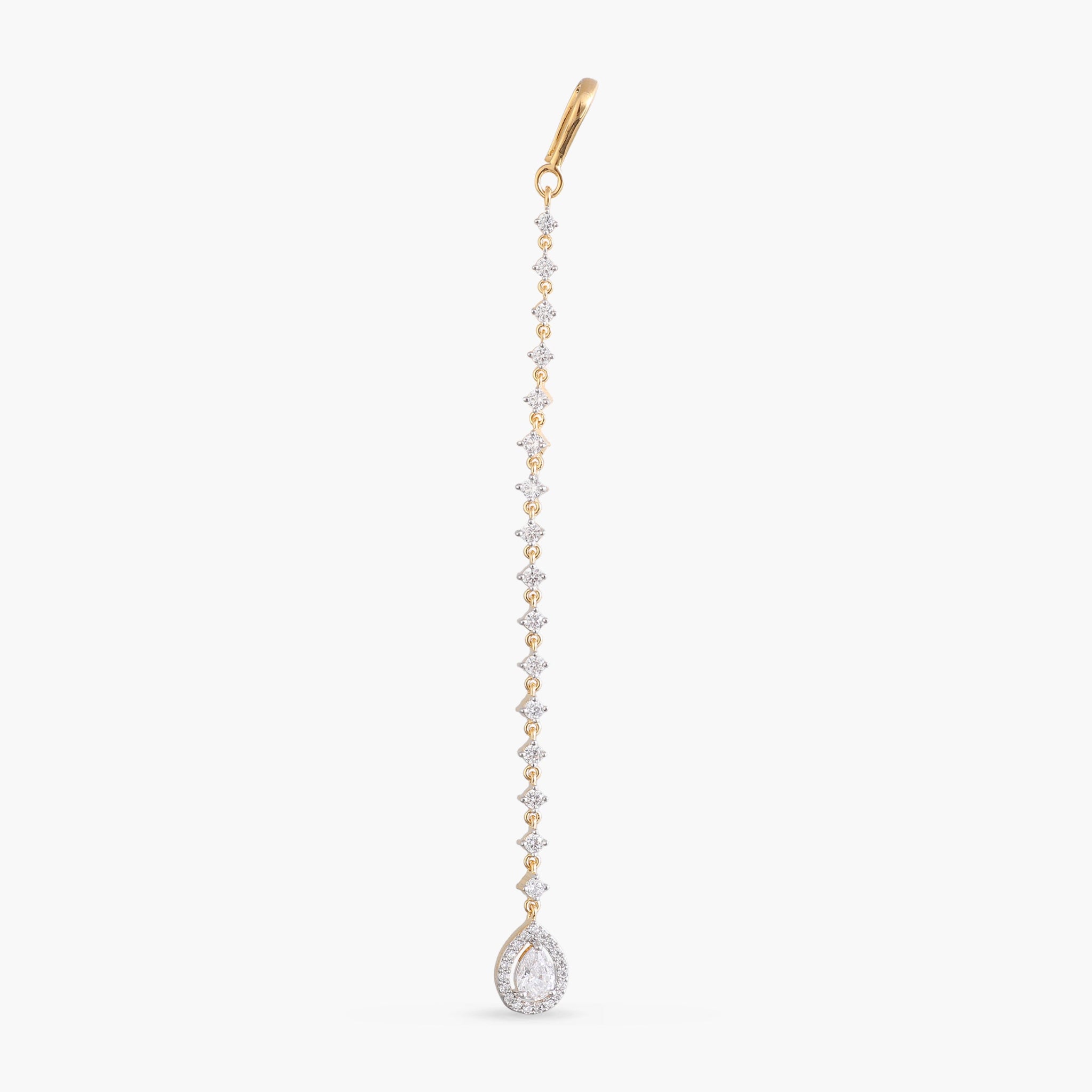Handcrafted with a luminous pear-shaped stone at the center, this dainty CZ maang tikka radiates timeless beauty. Ideal for bridesmaids, festive dressing, or as a thoughtful gift for the wedding season.