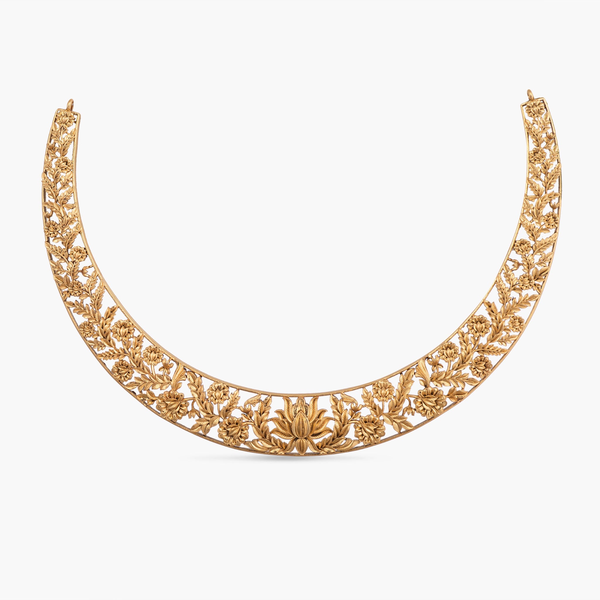 Handcrafted in 925 silvers, this necklace features intricate floral cutwork with a lotus motif at the center. A symbol of purity and grace, perfect for festive occasions, celebrations, and elevated everyday styling.