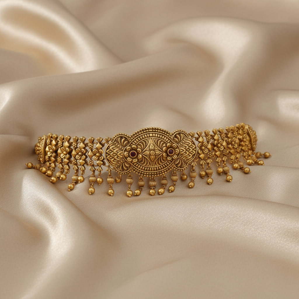 • Swara Floral Silver Choker Set