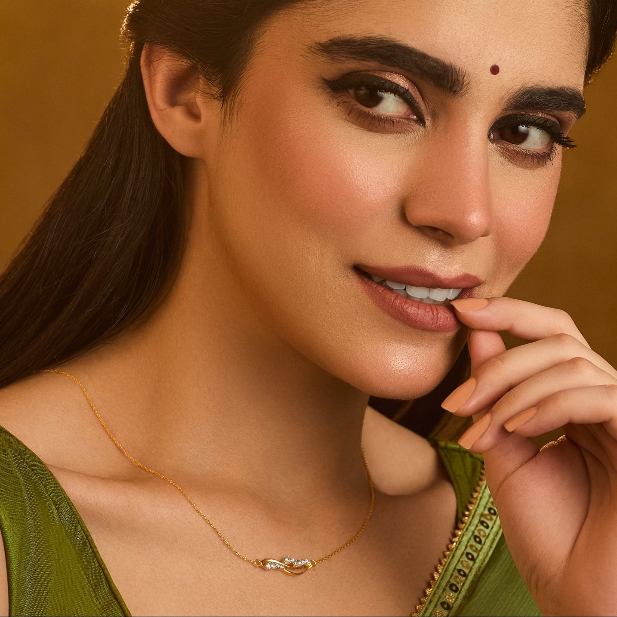This handcrafted 925 silver necklace features a leaf-like design adorned with delicate CZ stones. A poetic blend of nature and elegance, perfect for both festive and contemporary looks.