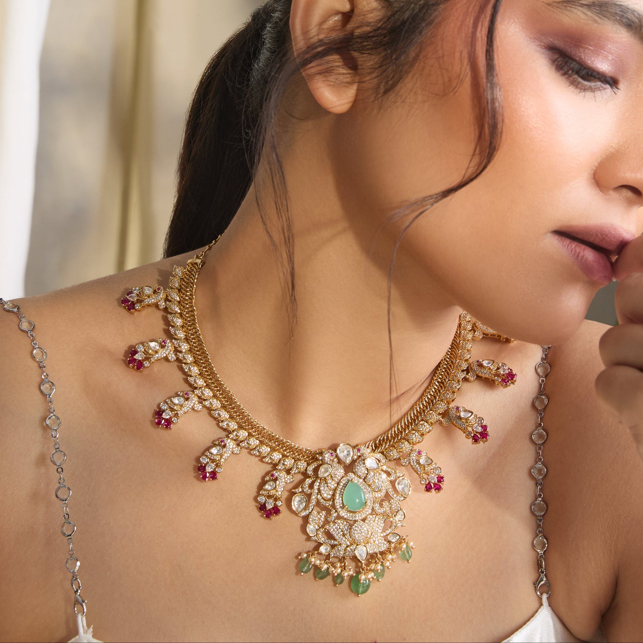 Handcrafted in 925 silver and designed for the ceremony, the reception, and every formal moment in between. Moissanite arranged in heirloom bridal patterns, with cabochon stones and bead drops that work across bridal palettes.