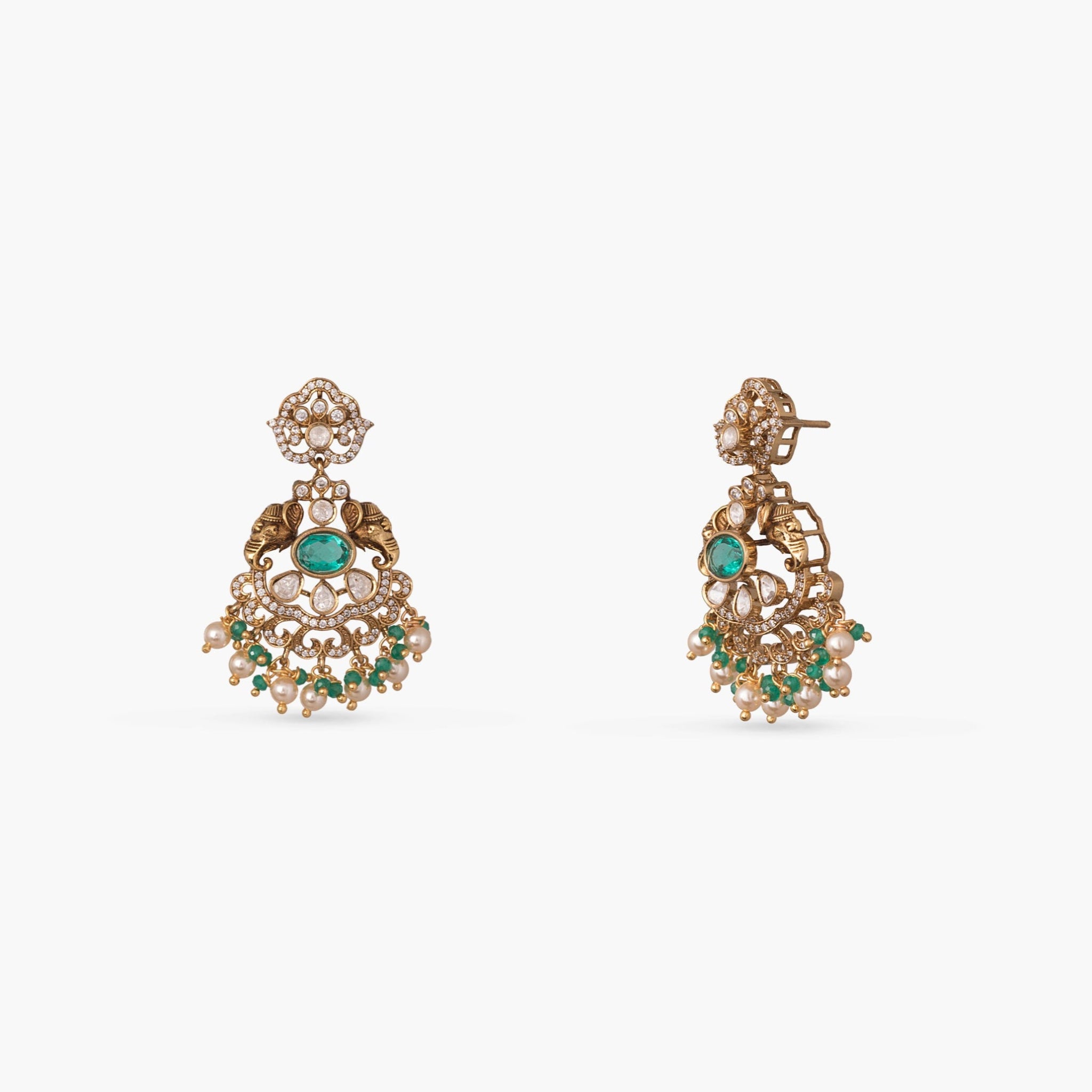 Floral-forward temple artistry in antique-finish 925 silver with kempu highlights. The wire styling keeps it structured yet wearable for hours. Ideal for bridal trousseau, festivals, and heirloom-inspired looks.