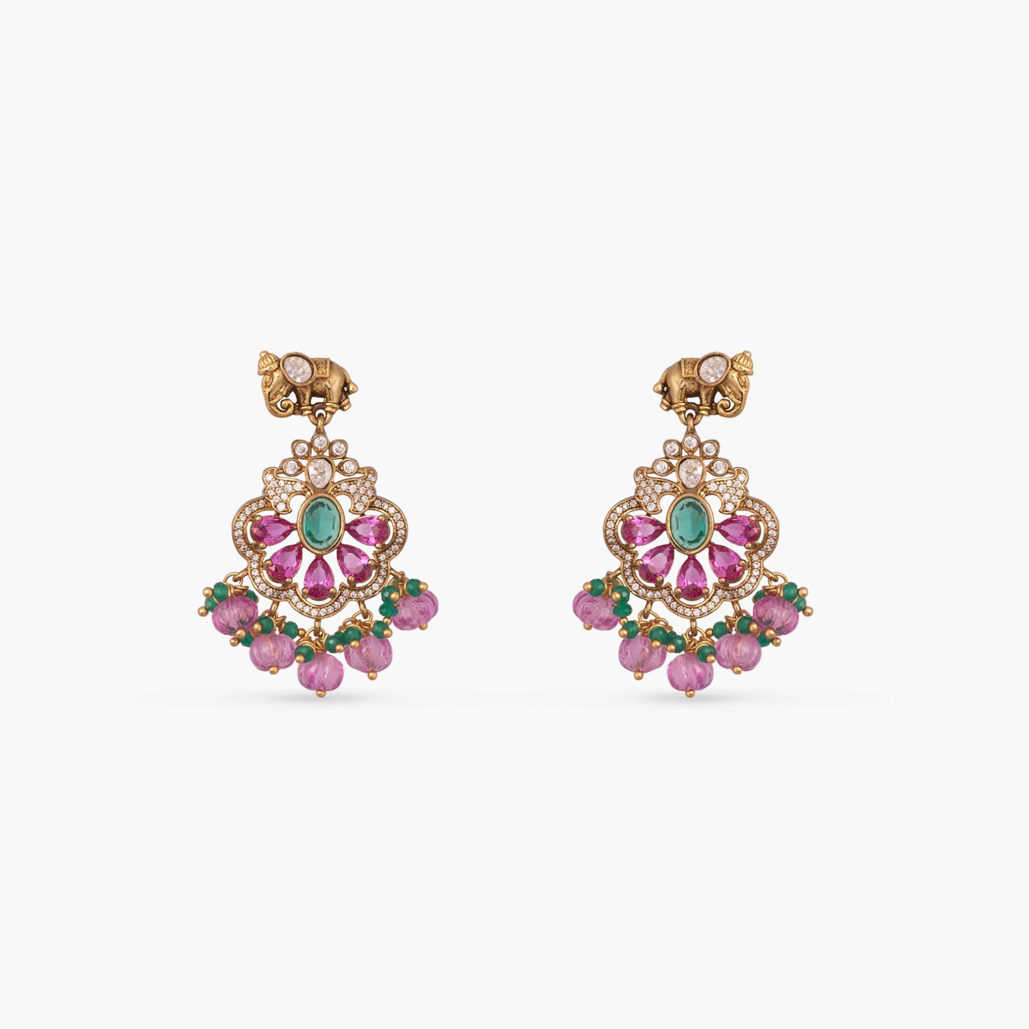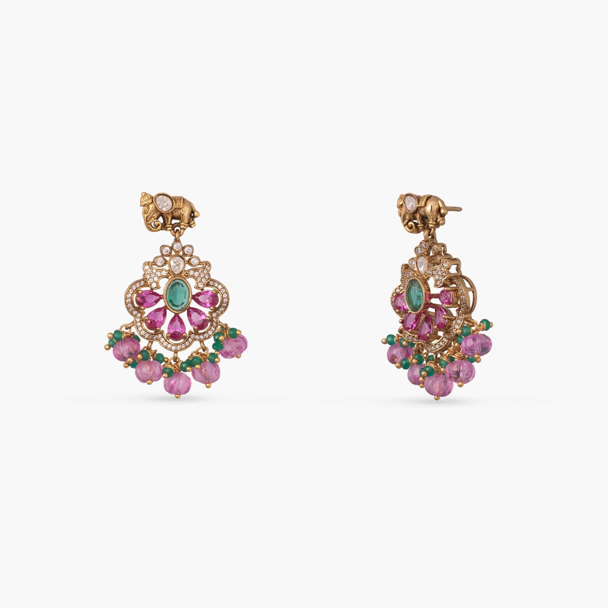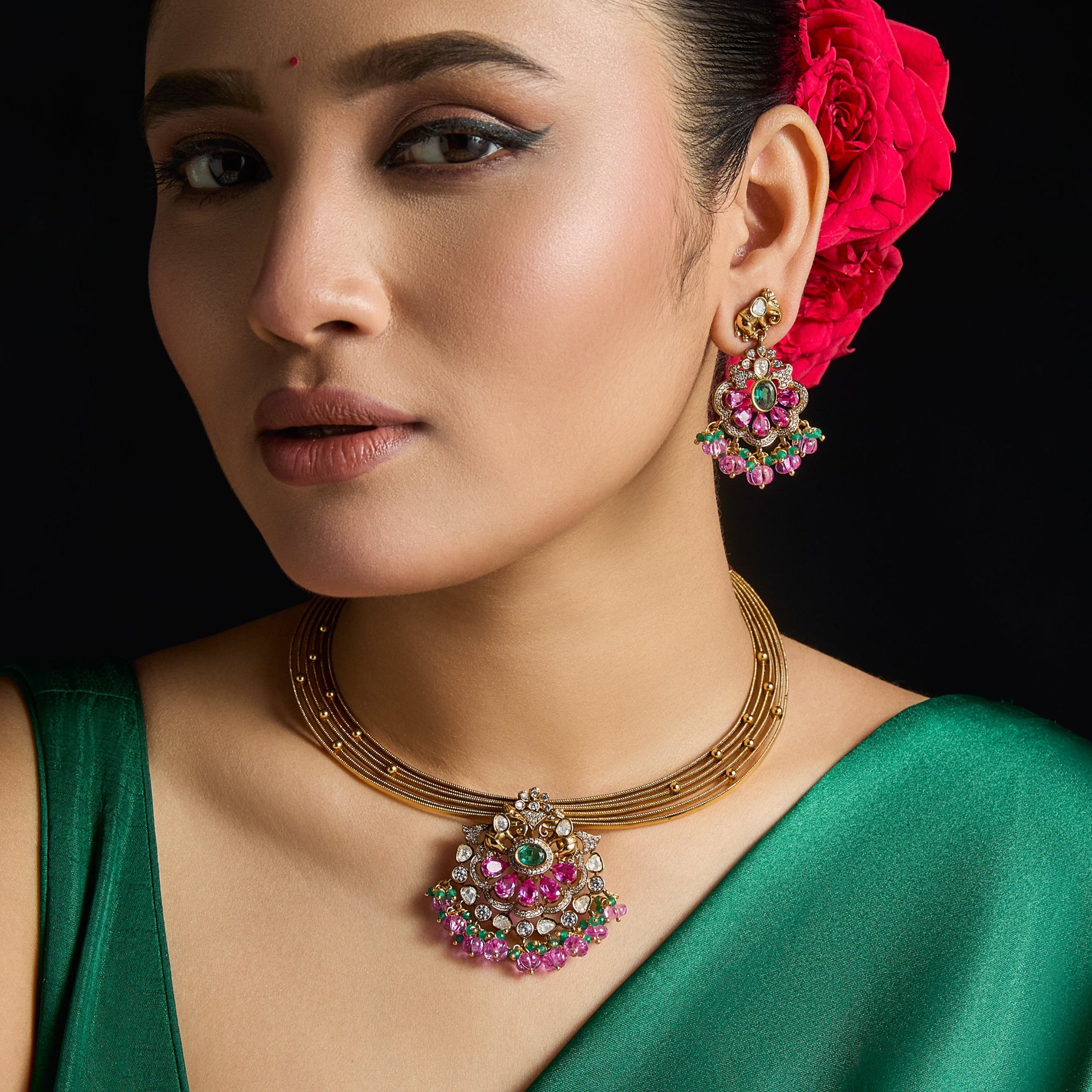 Antique 925 silver wire necklace featuring elephant and floral elements with soft pink accents. Symbolic and celebratory—perfect for weddings and grand functions. Works with traditional sarees and rich, layered lehengas.