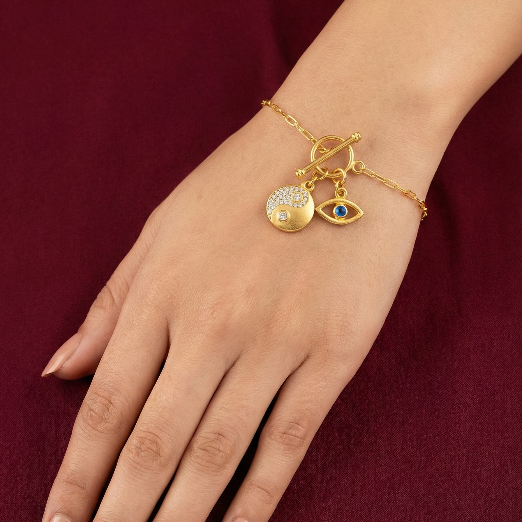 Crafted in 925 silvers, this link bracelet features a classic toggle bar closure for a refined, hardware-inspired aesthetic. Crafted to wear solo or add charms, it offers a personalized way to showcase your favorite motifs.