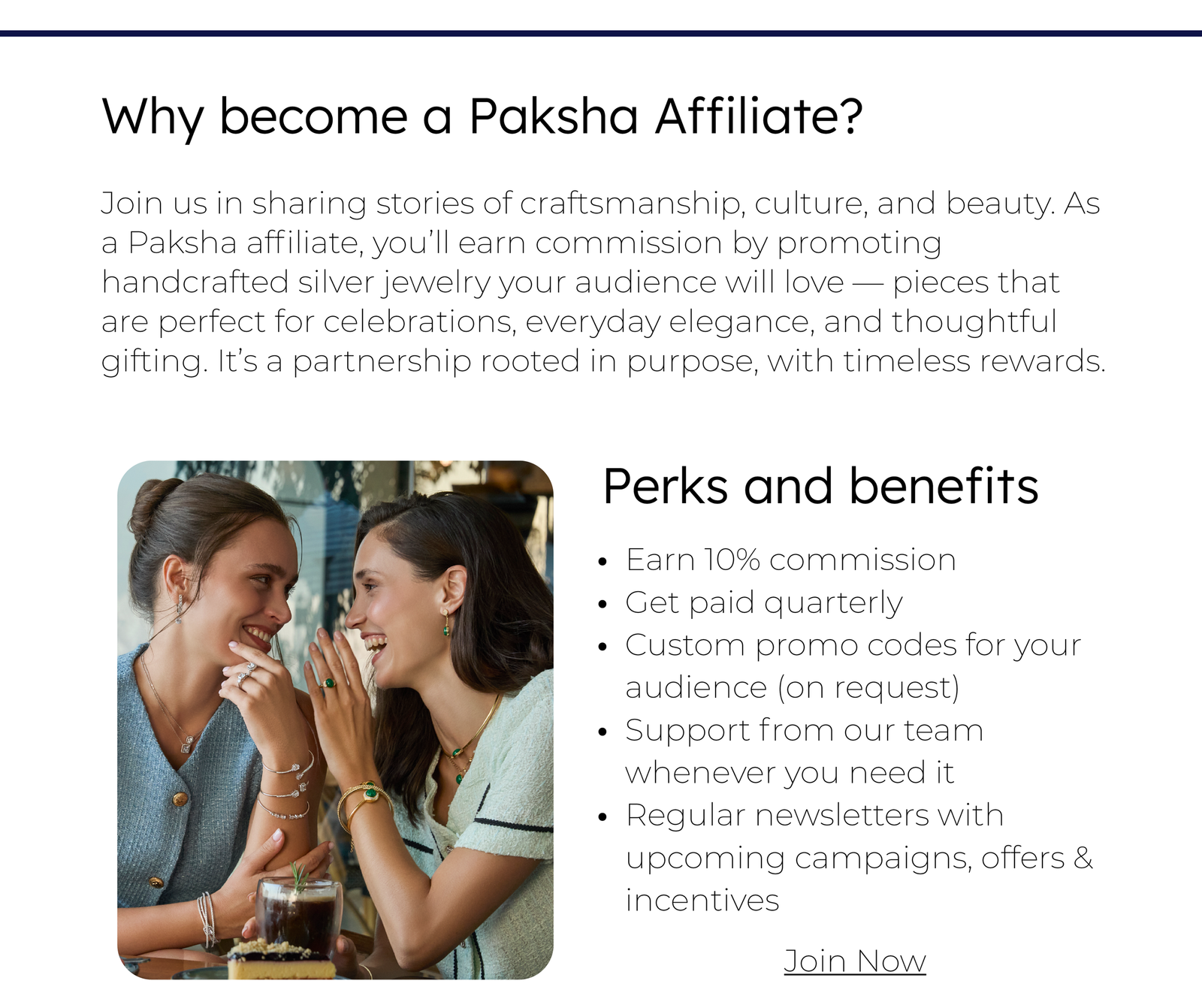Paksha draws inspiration from India's rich heritage and artisan traditions. Our team has been in jewelry-making for decades, mastering the art of high-quality, sustainable production. We believe that the best products come from a deep understanding and appreciation of our heritage, and a commitment to excellence in innovation.